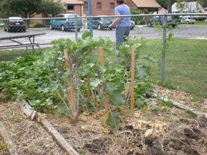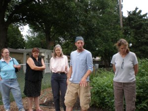 Brad Kindler explaining the garden. Community members from Bosnia, Africa, Iraq, and Mexico grow over 35 different types of plants in this small garden!