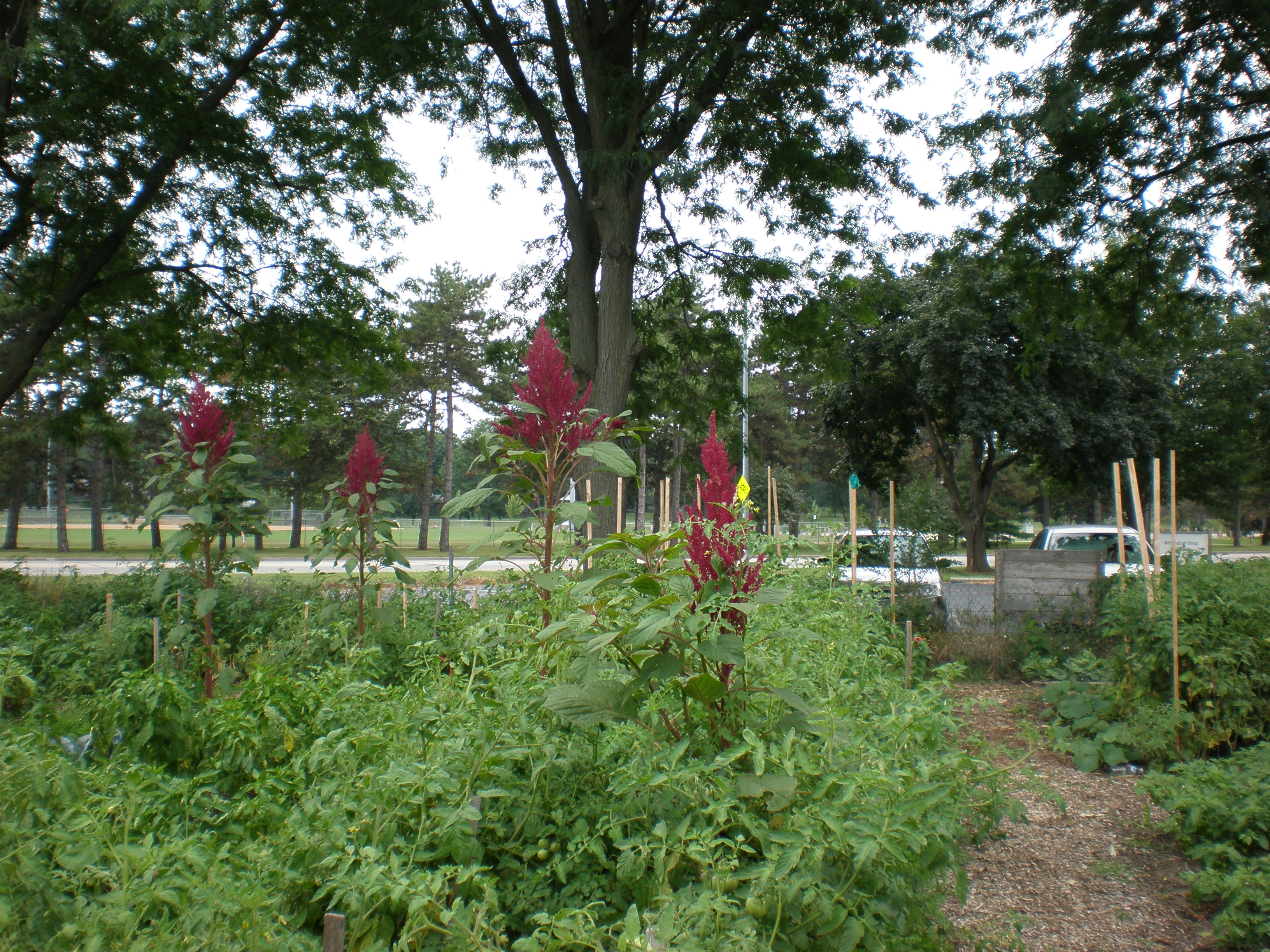These red inflorescences are volunteer Amaranth, a grain from Mexico that is higher in protein than any other grain. Its cultivation was banned by the Spanish due to its association with “pagan” Aztec rituals.