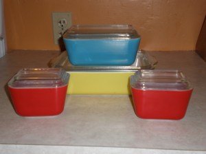 Went to an Antique Show today with Patti – lots of cool stuff! I bought vintage pyrex refrigerator dishes which I have been desiring as of late. Here’s my find: